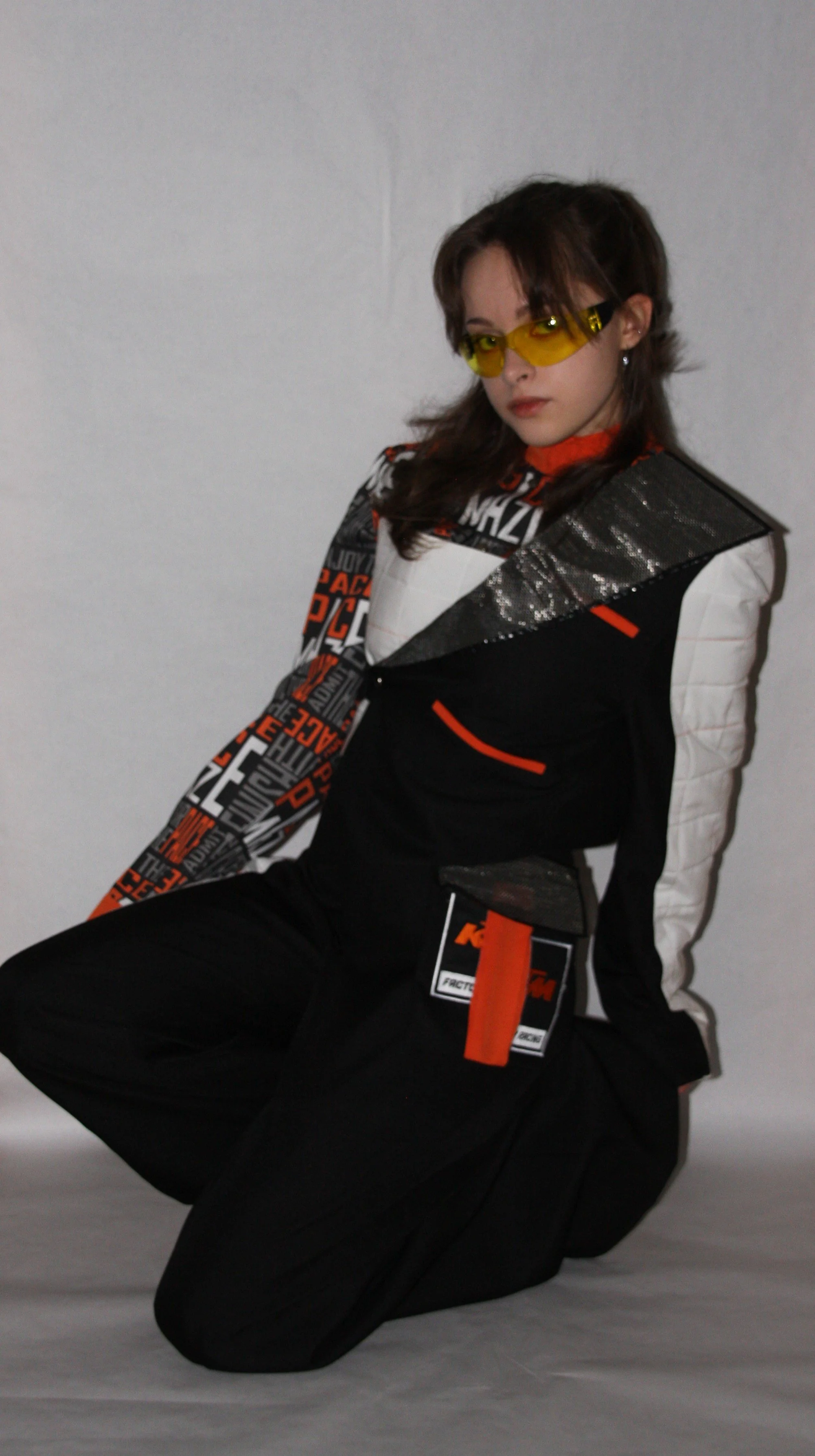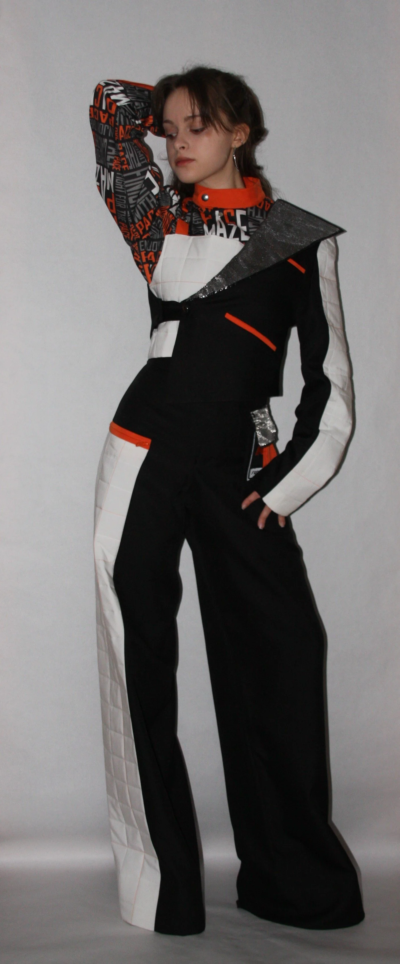 This outfit, made up of four separate pieces, mirrors the structure of a business suit, symbolizing responsibility.