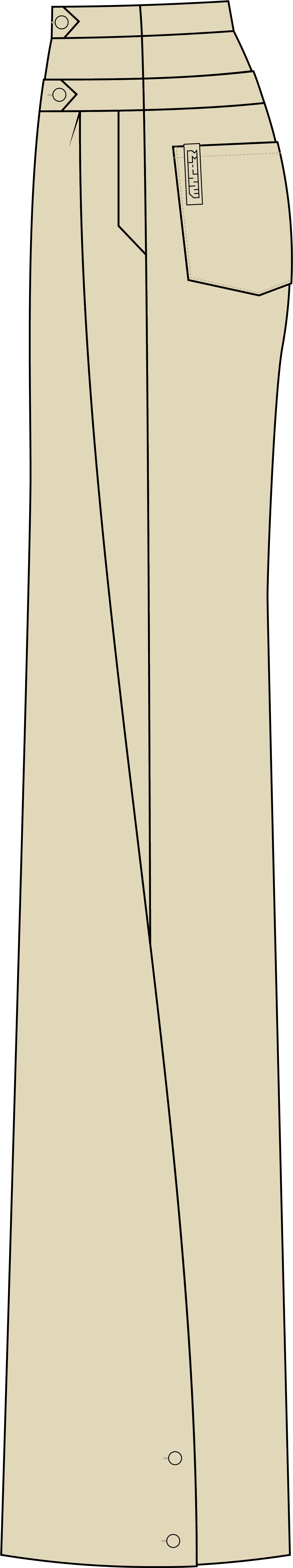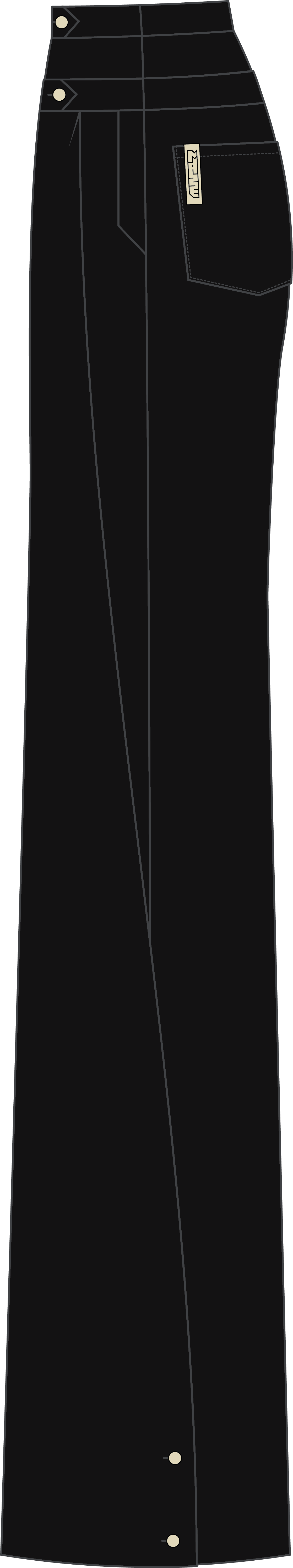 The pant legs feature another functional detail: two buttons on the side seam allow you to secure the front pleat for added structure, letting the fabric stack neatly over your shoes.